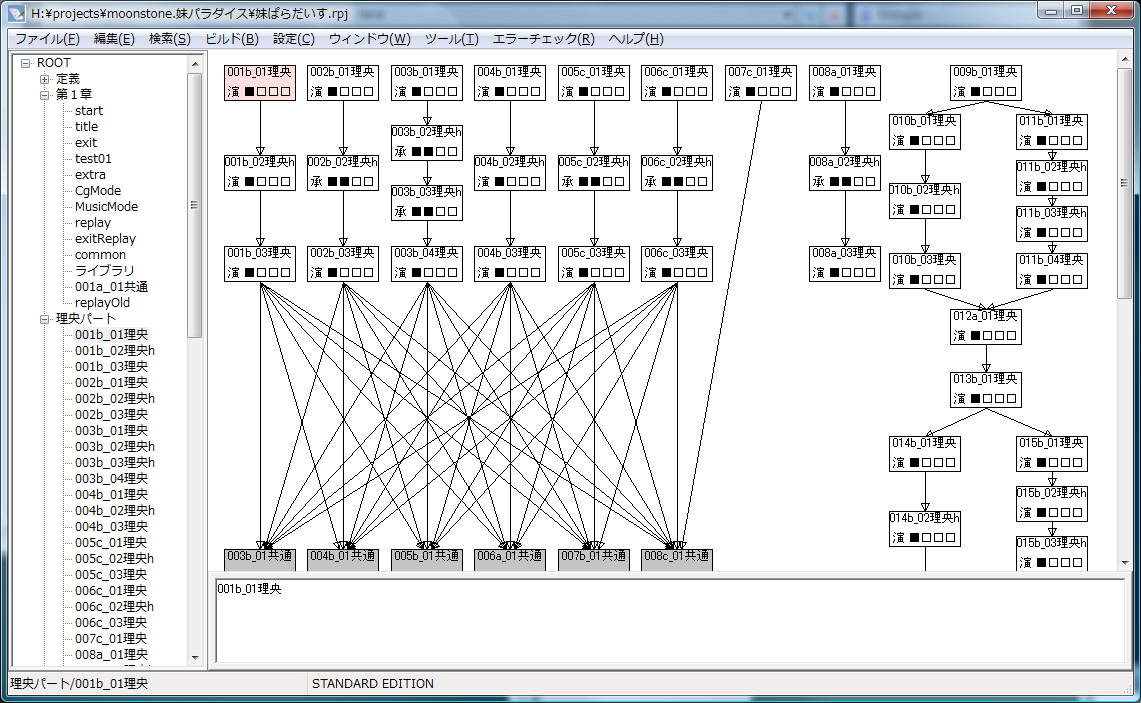 ノードをダブルクリックすると、そのシーンに対応した演出エディタが起動します。