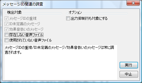 最終的なチェックはリリース処理(後述)が行いますが、単純に演出で利用されていながら存在しないCGや音声を検出できます。