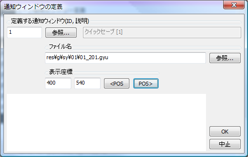表示座標は、ゲーム画面相対座標で、通知ウィンドウの左上を表示する位置を指定します。